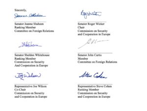 სენატორები მოუწოდებენ სახელმწიფო დეპარტამენტს, მოითხოვოს საქართველოს მთავრობისგან ამ ცრუ ბრალდებების საჯარო უარყოფა და უზრუნველყოს, რომ ამერიკის სახელით მომუშავე არც ერთი პირი არ გახდეს დევნის ან დისკრედიტაციის სამიზნე.