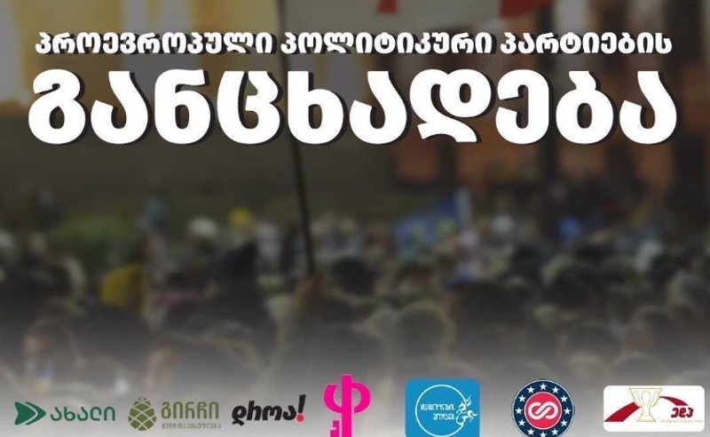 “რეჟიმმა გააღრმავა ქვეყნის წინაშე არსებული ყველა პრობლემა” – პროევროპული პარტიები – ახალი, გირჩი-მეტი თავისუფლება, დროა, ეროვნულ-დემოკრატიული პარტია, ევროპული საქართველო, თავისუფლების მოედანი და ფედერალისტები ერთობლივ განცხადებას ავრცელებენ.