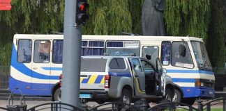 უკრაინაში თავდამსხმელმა ავტობუსი გაიტაცა და ამტკიცებს, რომ დანაღმული აქვს