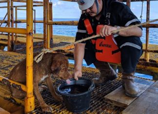 ნაპირიდან 220კილომეტრში, ზღვაში, ნავთობის ჭაბურღილის მუშებმა ძაღლი გადაარჩინეს